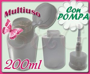 Description : Dispenser pump dotato di molla superiore, che consente di regolare la giusta quantità di prodotto senza sprechi e fuoriuscite accidentali. Il dispenser pump può contenere fino a 200ml di prodotto. Facilissimo da usare, il flacone ha la chiusura ermetica e non permette fuoriuscite di prodotto, anche se viene trasportato.