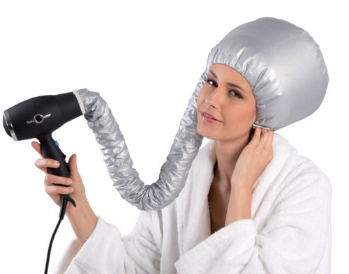 Description : Ideale per una piega ben fatta e veloce senza andare dal parrucchiere, o senza avere in casa un ingombrante (e costoso) casco asciugacapelli. Realizzata in resistente poliestere, questa cuffia si collega al phon in un attimo, così che avrai le mani completamente libere per fare altro, per esempio truccarti o leggere! Lunghezza tubo: 78 cm ca.